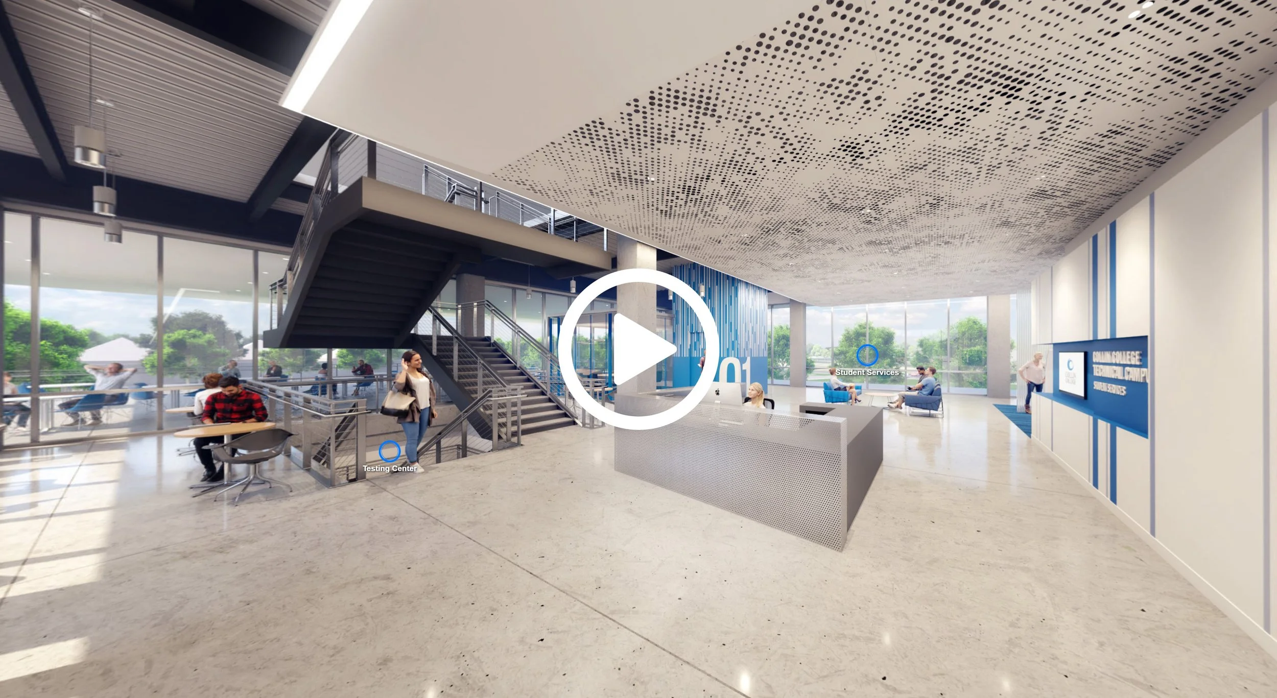 This dramatic and ambitious project features many specialized training spaces, offices, student lounges, & classrooms.